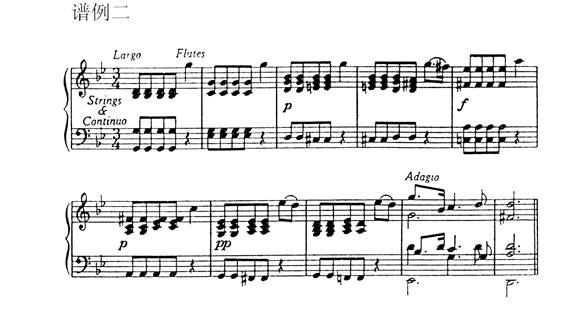 很少看到 Händel在咏叹调之前这样来用乐队,手稿中特别注明symphony的字样,强调和区别通常作为间奏ritornello的乐队部分。这里symphony有两个功能:一是外在客体的需求,提供一个音乐的环境;二是描写当时Theodora沉思内观的精神状态。前面罗马合唱队谐谑式的欢快,是由田园色彩的F大调来体现,转到symphony上的和弦是灰暗的G小调。音乐起首三个小节,在高音区域,笛声以同样的音程重复吹出,犹如一线逼迫出来的纤细之光,高处不胜寒意。开始的弦乐和弦由低音部开始,音乐是空旷的释放,随着每一小节的推进,和弦的音程关系不断减缩,逐渐靠近浮在上面持续不动的G。音乐走到第四小节,冷峻的神光似乎苏醒过来,与第五小节的和弦一起打开,然后又归息下去。音乐至此,与开首的遥远不再一样,神秘之光是天上的神灵,在昏暗而遥远的地平线上透露出来。它延伸繁衍,渗入身心,折射成为Theodora内心的精神世界和灵魂的光明。