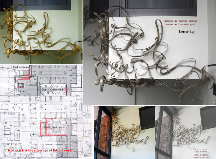 The project is about life and growth. It is made from words in different languages about healing and growth. These words were collected from the students and staff who used the facility. (Letter Key indicate the location and shape of the letters)